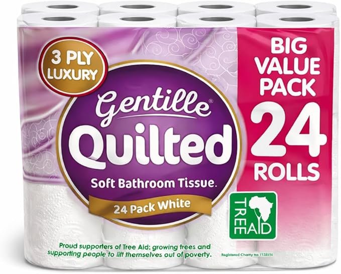 - 3-PLY TOILET ROLLS – Gentille Quilted toilet rolls are made from 3 layers of luxuriously thick, deco-embossed white tissue. Say hello to 3 plies of cushiony softness and ultra-absorbance.